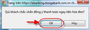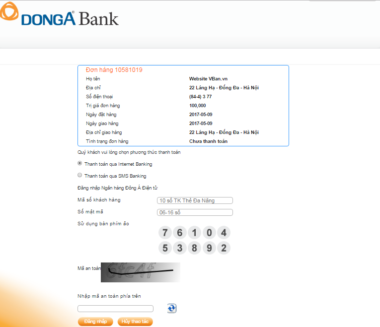 Tại Cổng thanh toán Ngân hàng Đông Á: quý khách lựa chọn phương thức thanh toán qua Internet Banking với các thông tin sau: