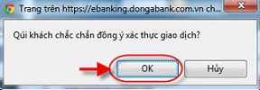 Quý khách đồng ý xác thực giao dịch chọn OK.