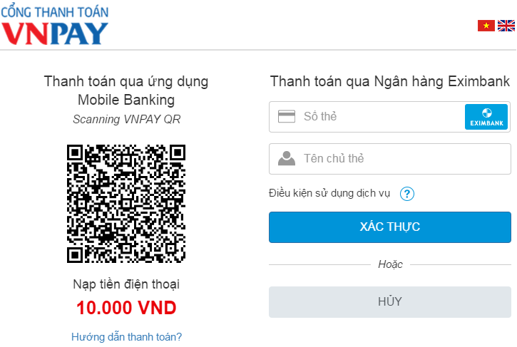 Quý khách xác nhận lại nội dung thanh toán và chọn ngân hàng thanh toán là EximBank và nhấn nút “Thanh toán”.