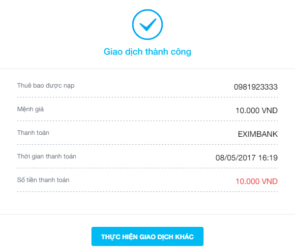 - Nhấn nút “Thanh toán” để thực hiện thanh toán;