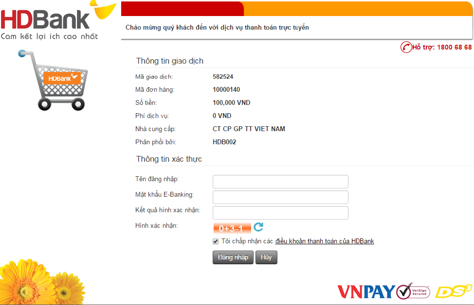 Bước 2: Tại Cổng thanh toán Ngân hàng HDBank: quý khách nhập các thông tin xác thực sau: