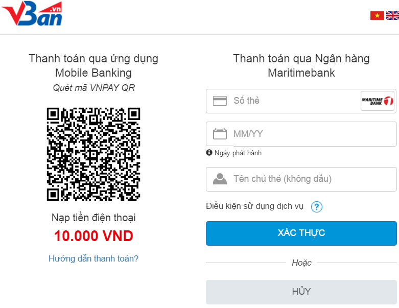 Sau khi lựa chọn sản phẩm, dịch vụ, Quý khách chọn ngân hàng thanh toán là Maritime Bank và nhấn nút “Thanh toán”.