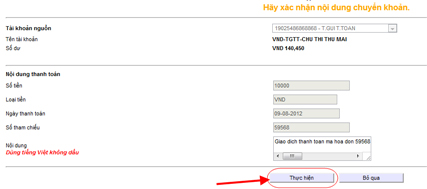 Xác nhận lại nội dung chuyển khoản đơn hàng , nếu chính xác quý khách nhấn vào“ Thực hiện"
