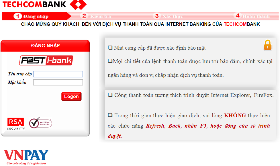 Cổng Vnpayment sẽ chuyển thông tin sang cổng thanh toán của ngân hàng Techcombank. Tại đây quý khách nhập các thông tin sau :