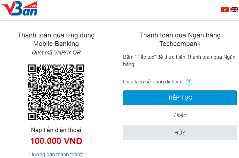 Sau đó nhấn nút “ Thanh toán “ , Vban sẽ chuyển quý khách sang cổng thanh toán Vnpayment. Tại đây: