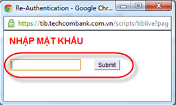 Password : (Được lập khi quý khách đăng ký sử dụng Internet Banking cộng dãy số hiển thị trên thiết bị Token ).