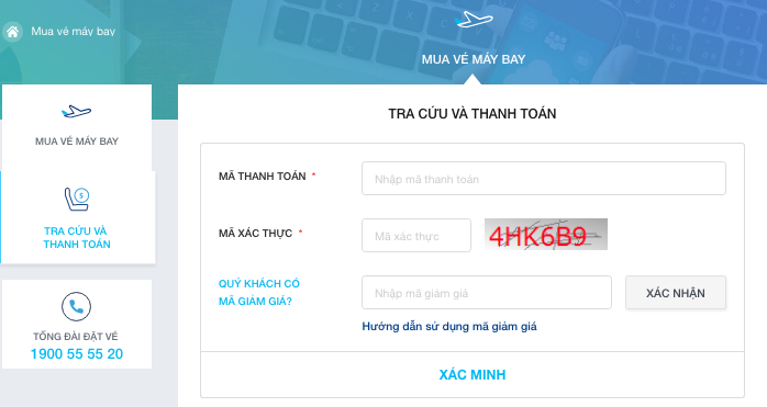 Vui lòng nhập chính xác mã đặt chỗ , khi đó màn hình sẽ hiển thị THÔNG TIN CHI TIẾT VÉ MÁY BAY của quý khách phía bên dưới. Để thanh toán mua vé quý khách nhấn vào nút THANH TOÁN.