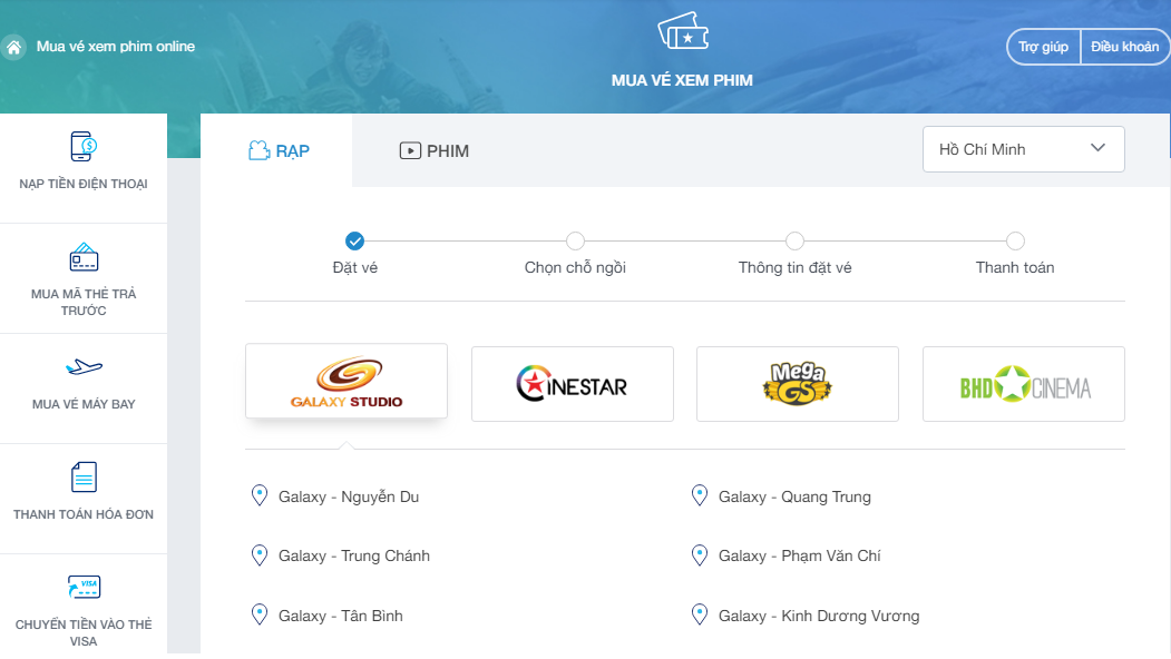 Trong cửa sổ mua vé xem phim, vui lòng chọn Rạp - Phim quý khách mong muốn và nhấn chọn Đặt vé.
