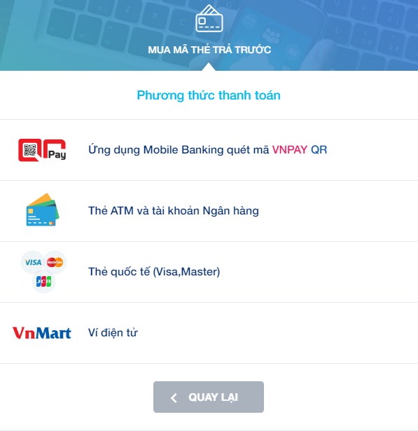- Tùy vào phương thức thanh toán quý khách lựa chọn, màn hình sẽ hiển thị các thông tin yêu cầu khác nhau.