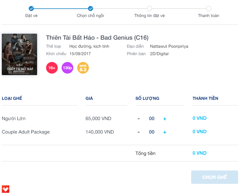 Bước 3: Khách hàng chọn số lượng ghế. Và nhấn Chọn ghế.