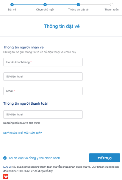 Bước 4: Khách hàng chọn ghế. Và nhấn Tiếp tục.